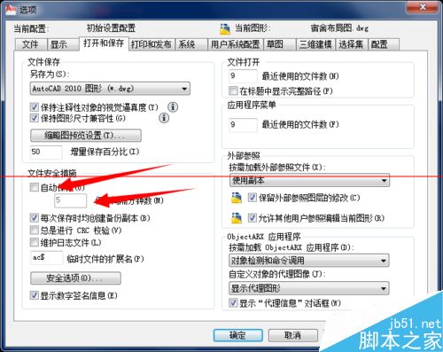 6、在“自动保存”的前面取消对勾,就可以不设置自动保存,这样画图时就不会一卡一卡的了