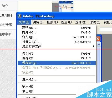5、在PS“文件”菜单中选择“另存为”文件,如图所示。