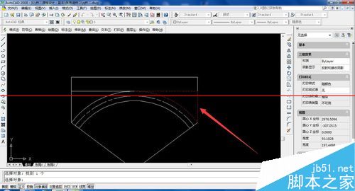 四:把选择框移动到需要查询的面域线框上去,点击鼠标左键选中,选中之后的面域线框会变为虚线。