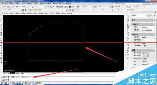 五:移动矩形选择框,选中整个图形,选中之后状态栏会提示我们选择了多少个对象,这里可以看到我已经选中了全部五个对象,一个对象即为一条线段。