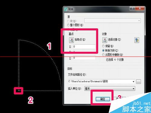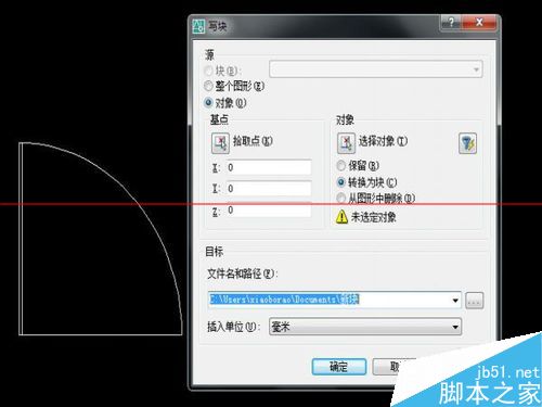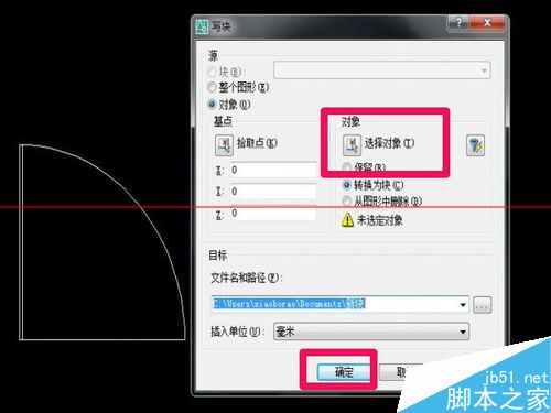 4、在弹出的对话框中,我们点击“选择对象”,然后框选我们要定义的块,如图所示。
