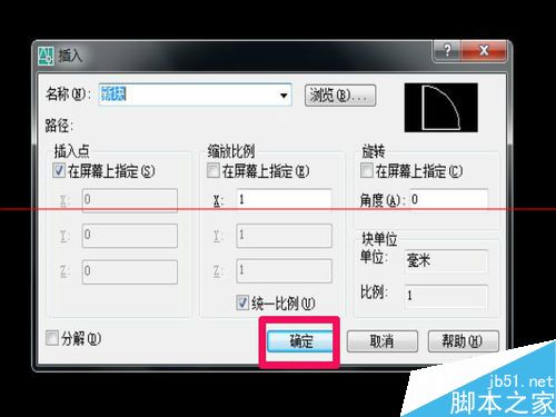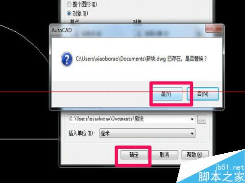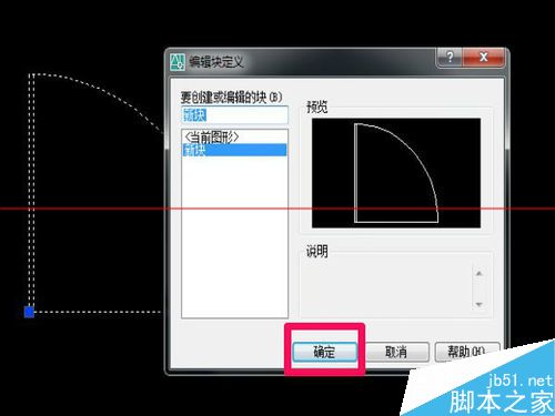 8、然后双击块,在弹出的对话框中点确定,如图所示。