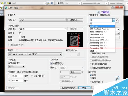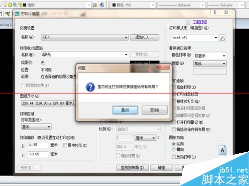 2、点击右上角的打印样式表的倒三角符号“▼”。在下拉菜单中选择“acad.ctb”选项。会弹出一个框,“是否将此打印样式表指定给所有布局?”点击“是”。