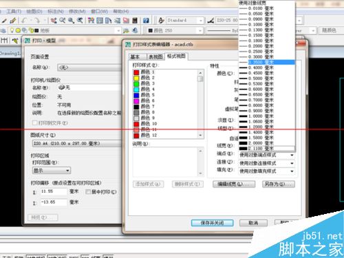 5、接下来是设置线性的粗细了。一般来说,墙体线应该是最粗的,其次是家具线、门窗线、字体线、家具内线、地板线等。选择左侧线型的颜色,再点击右边“线宽”,在下拉菜单中选择合适的粗细。
