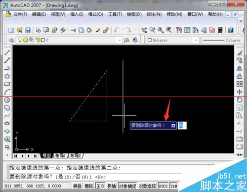 7、默认状态下,保留源对象,直接点击回车键,这样有关镜像的所有操作就完成了,下图就是镜像之后的效果。