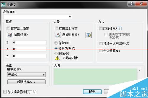 1、在CAD中,利用命令BLOCK,命令,弹出块定义框。