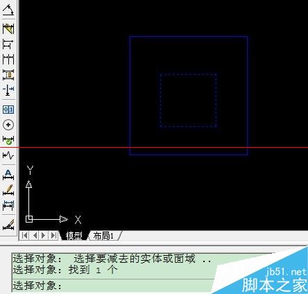 1、SU命令之后,先选大面域,确定后选要抛去的面域。
