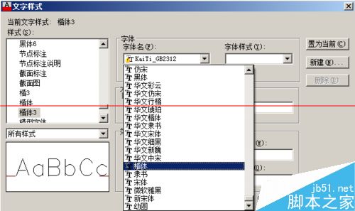 2、单击“文字”右边的箭头符号,出现“文字样式”选项框。注意字体名那里有个感叹号,说明这个字体有问题。