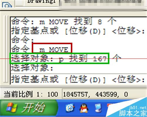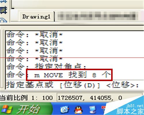 2、输入“m”快捷键,或“move”完整命令,回车。