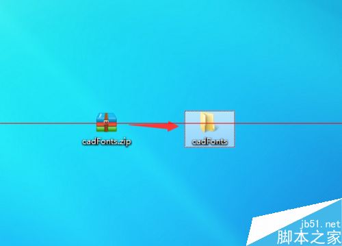 2、接着就把下载下来的字体压缩包放在桌面上,解压准备待用。