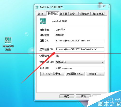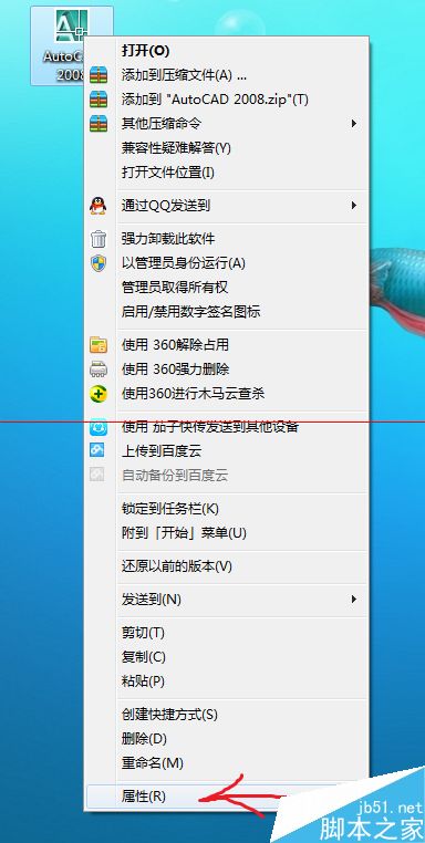 3、找到自己所安装使用的CAD软件的安装地址,笔者这里是使用的CAD2008。找到自己安装软件的具体安装地址。鼠标右键点击CAD软件的图标,选择属性。