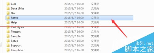 6、找到CAD安装文件夹下面的fonts文件夹,双击打开。