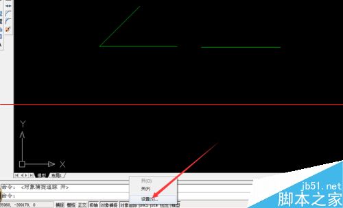 1、如上图画出45度角是比较麻烦,下一步是用CAD设置45度角。首先单击-对象追踪。