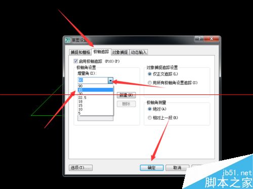 3、选择-极轴追踪,选择45度,在确定。