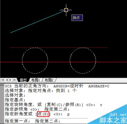 2、要求新角度时键入P(点选项),点取图块外直线的两个端点获得新角度。旋转命令通过以上传入的实测参照角和新角度,便可精确地计算出需要的旋转角度并对图块进行旋转。