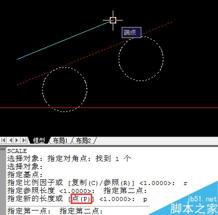 2、要求新长度时键入P(点选项),点取图块外直线的两个端点获得新长度。比例缩放命令通过以上传入的实测参照长度和新长度,便可精确地计算出需要的缩放因子并对图块进行缩放。