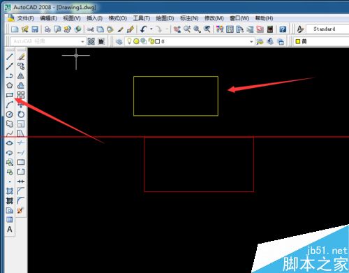 5、如下图看到了红色的矩形。以上操作每一次都是要设置才有颜色的,如果要画出都有颜色怎么操作?下一步有步骤。