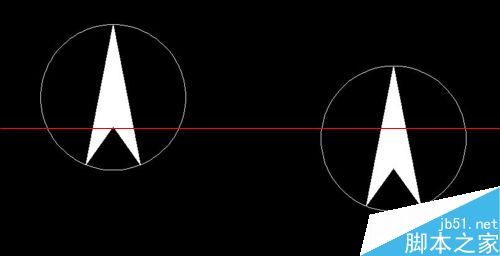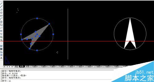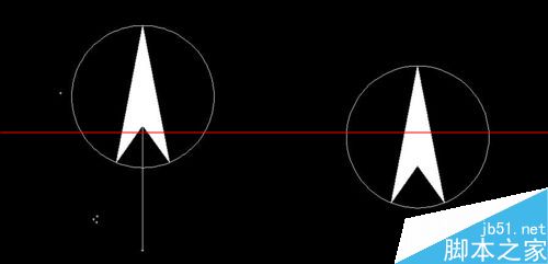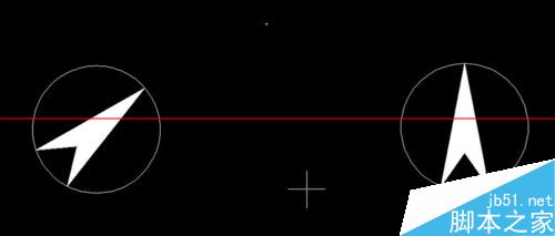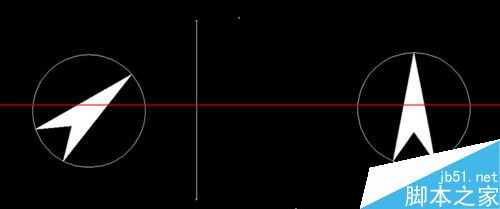 1、如图所示,我们要将左边的指北针放成右边的样子,这里我们要用到“对齐”命令,快捷键命令为“al”。