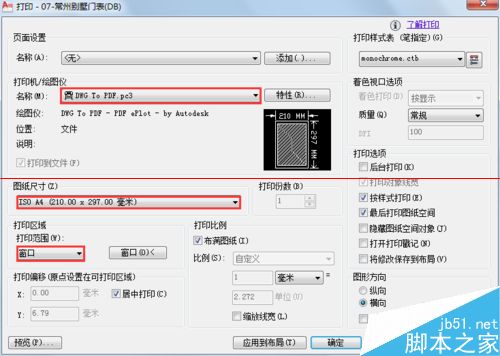 在“打印范围”内选择”窗口“方式,通过在图中拉窗框选的方式确定打印区域相比其他几种方式要更为直观和方便。