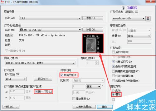 4、打印样式表设定打印对象的颜色、线宽以及线型等打印特性。打印小图时,可以直接选择CAD预设的“acad.ctb”样式进行彩色打印,或者选择”monochrome.ctb"样式进行黑白打印。