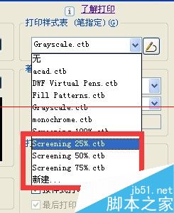 3、在打印样式表中你很可能选择了Screening 75%或75%以下的数值,一般情况我们使用75%来降低耗材,便同时打印的清晰度也降低了。你可以选择100%