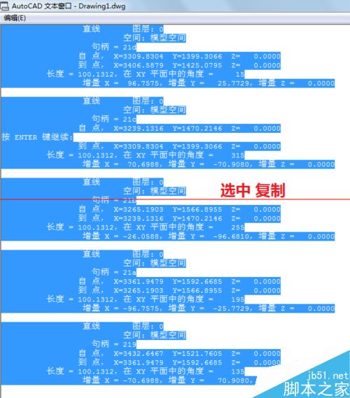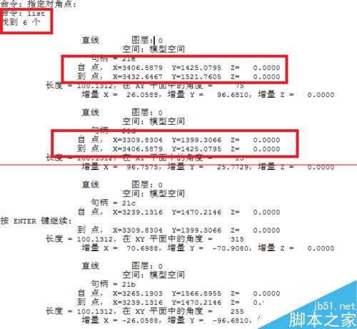 3、list窗口可以看到图形的相信信息,如起点和终点坐标等。