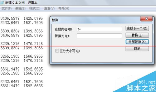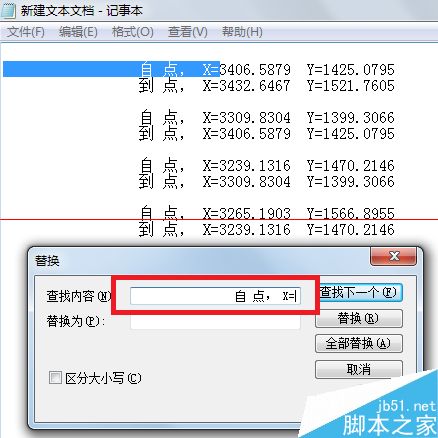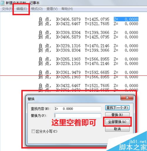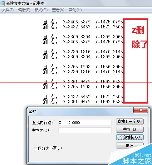7、通过编辑--替换,将z= 0.0000全部删除,如图。