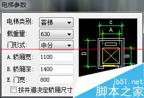 4、我们可以通过设置参数进行绘制,但更快捷的是我们一般会将“按井道决定轿厢尺寸”勾选,可以更方便的添加电梯。我们勾选之。