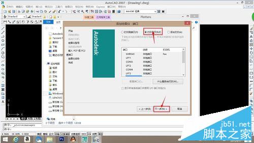 7、在“添加绘图仪——端口“页面中,选择”打印到文件“,再单机【下一步】按钮。