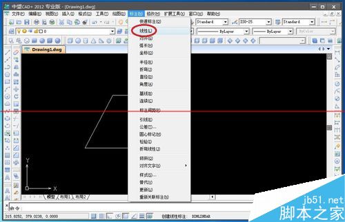 6、选择工具栏中的标注按钮,再选择线性标注。