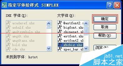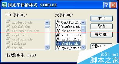 2、若点击确定后,仍然出现字体替换对话窗口,则继续选择“gbcbig.shx”字体,然后单击确定按钮。直至不再出现字体替换对话窗口。至此,AutoCAD文件中的乱码一般都能解决。