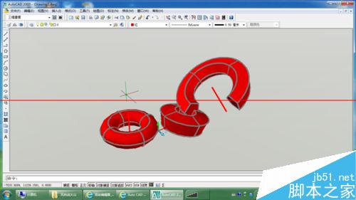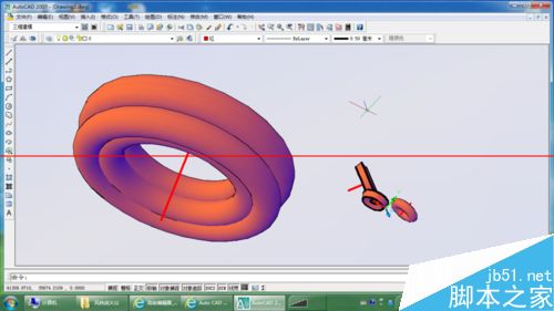 5、注意看命令行。rev 选择实体 完成后 选择轴线,如图,就形成了回转实体。