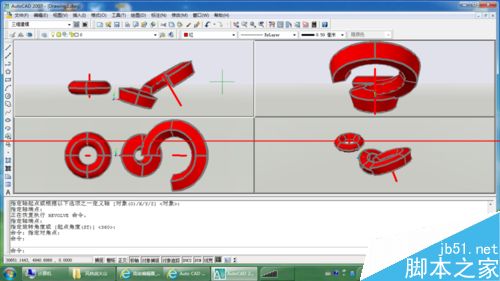 10、使用REV命令时,选择更多个面域和同一条轴线,可以创造出同轴的实体。