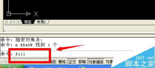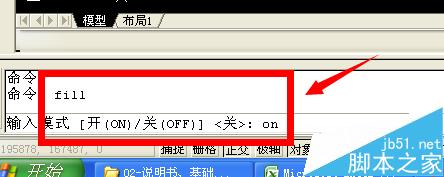3、然后输入“fill”命令,然后在输入"on",如图