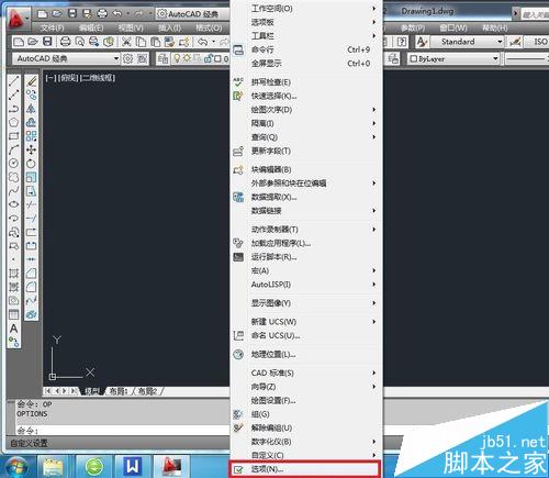 1、打开AutoCAD程序后,选择菜单命令“工具”—“选项”(或者直接输入“OP”命令)调出“选项”对话框窗口。
