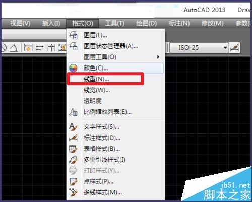 2、选择【格式】-【线型】