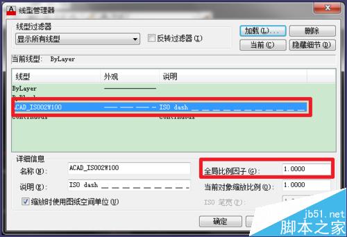 4、选择虚线,然后修改【全局比例因子】,数值越大,虚线的间距也会越大