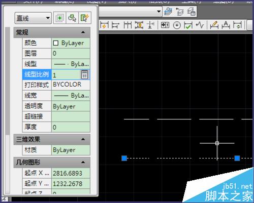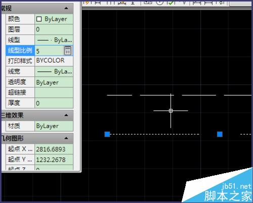 5、如果你只想修改某些虚线的比例,可以选中那条虚线,按快捷键【ctrl+1】打开属性窗口,可以看到【线型比例】