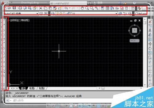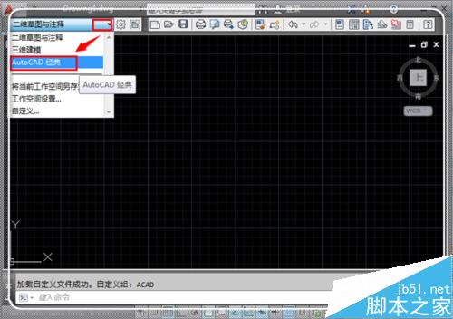 7、别急,点击“二位草图与注释”后面的倒三角形,找到“autocad经典”,点击“autocad经典”。