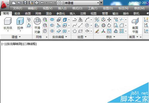 2、单击常用工具栏上的长方体工具,在画图区画出一个长方体,这里没给出尺寸和位置参数,所以就不需要精密设置了。画一个大致图形即可,重点是掌握差集运算方法。