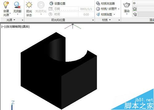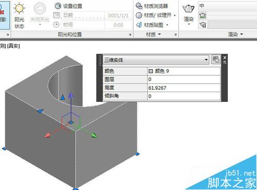 5、要看到实际效果就要对图形进行渲染。单击渲染工具,等待片刻,一个精致的3D图形就出现在你眼前,怎么样,很漂亮吧?立体图形差集运算是这样进行的,那么平面图形呢?