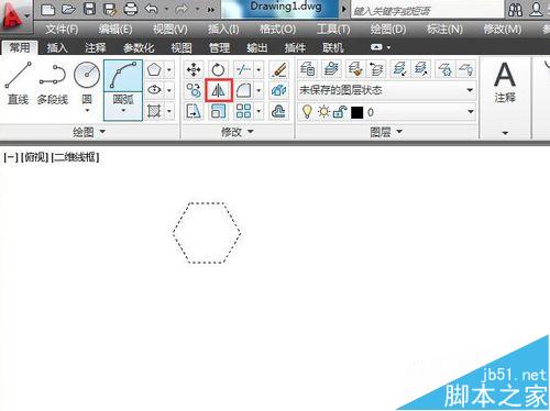 选中刚画好的六边形,单击镜像工具,这时六边形变成虚线,右击最底下的边的左端点,拖动鼠标把新的六边形和原来的拼接起来,对准时右击,选择确认。