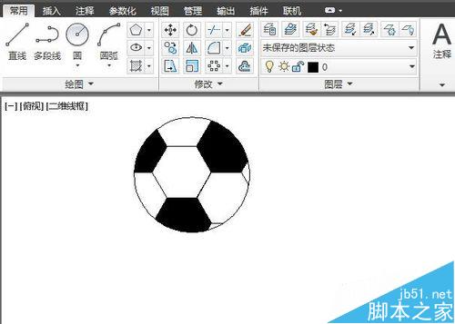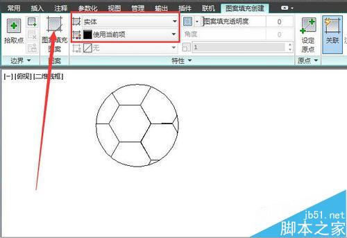 足球只需要黑白两色,白色不用上了,只要设置黑色。单击常用工具栏图案填充工具,选择实体,黑色,使用当前项。