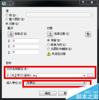 2、选择无单位,则写出的块与源图大小规格一样