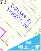 由于如果位置偏差很远是,CAD画点很难查找得到,所以用画线(‘LINE’命令)的方式来定位正确的坐标点。要注意的是,图上所标X、Y需要颠倒过来写,也就是先写Y坐标值,再写X坐标值,如第二个图所示。