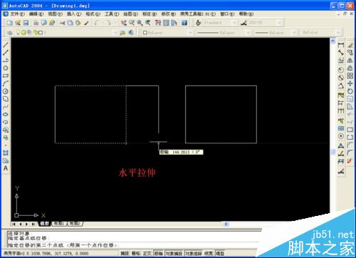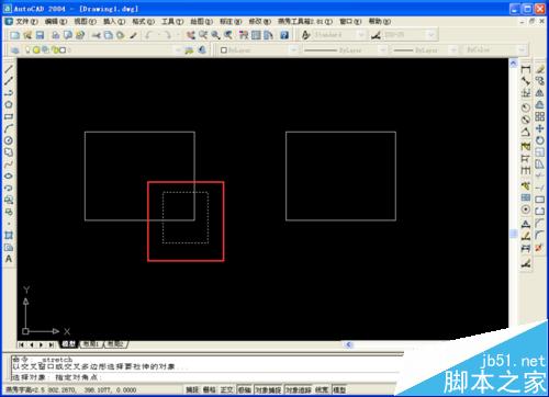 5、拉伸点——框选需要拉伸的点与相交于此点的两条线——按空格——选择基点——选择另一基点