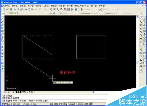 注意,需要将与被拉伸边相接的边也要选中,从右至左框选碰到及包含都会被选中,从左至右只有包含才会被选中。