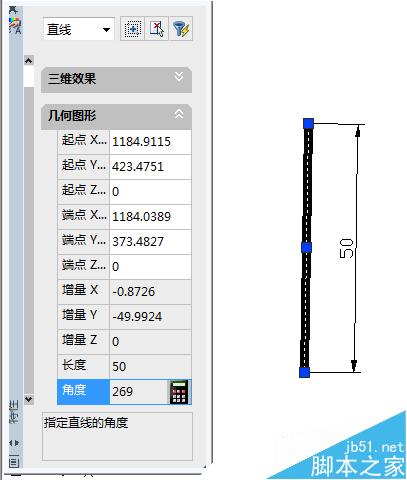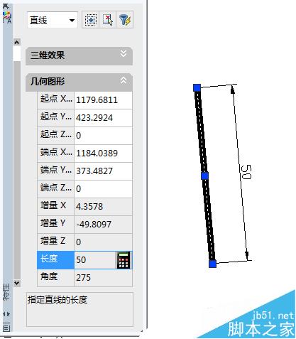 我以角度为275°,长度为50的直线为例,向大家做一个示范!
