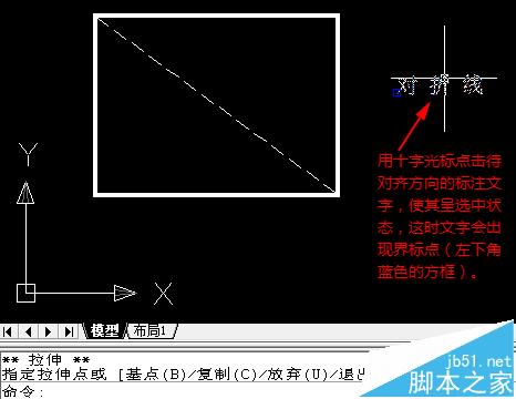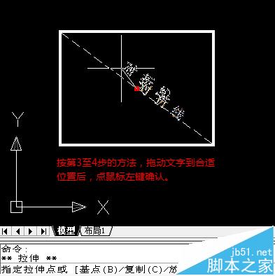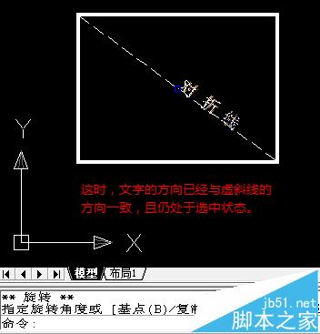 利用CAD文字的界标点及其右键快捷命令菜单中的旋转功能,可以实现与斜线倾斜方向完全一致的文字标注。
