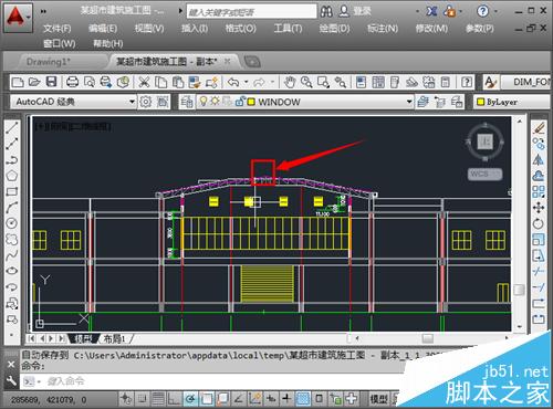 1、这里举一个例子,假如需要查询这儿房顶位置处的一点的坐标,查询的方式见下面。